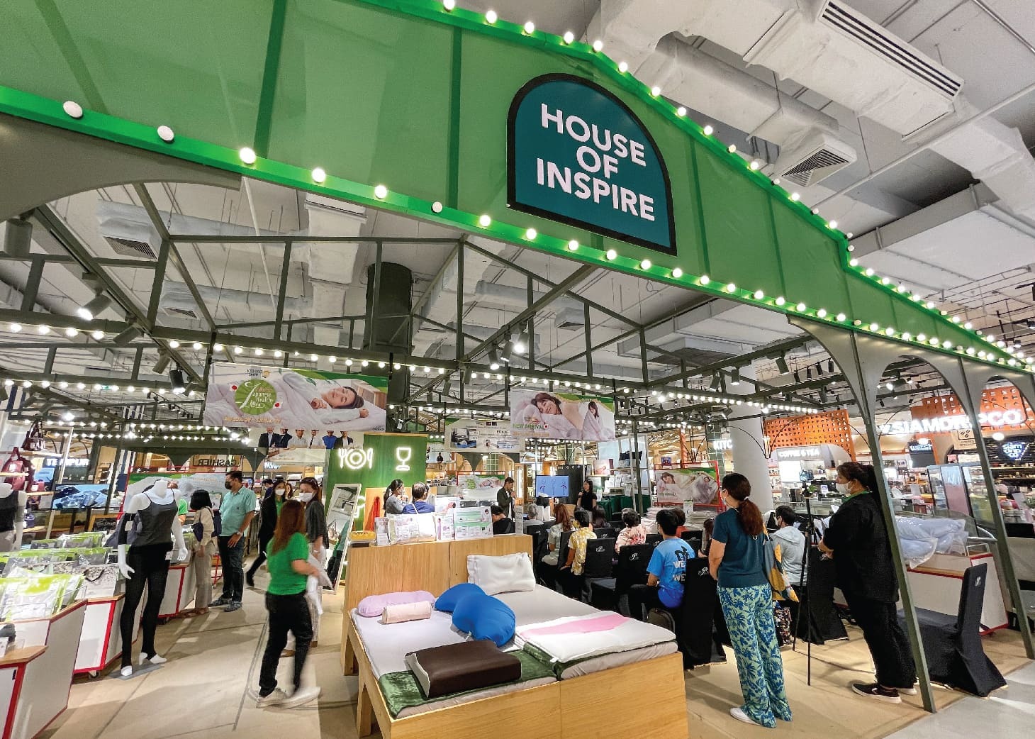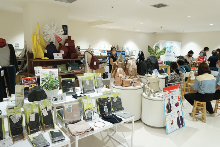 健康関連アイテムが展示・販売され、メーカーが直接タイの消費者と